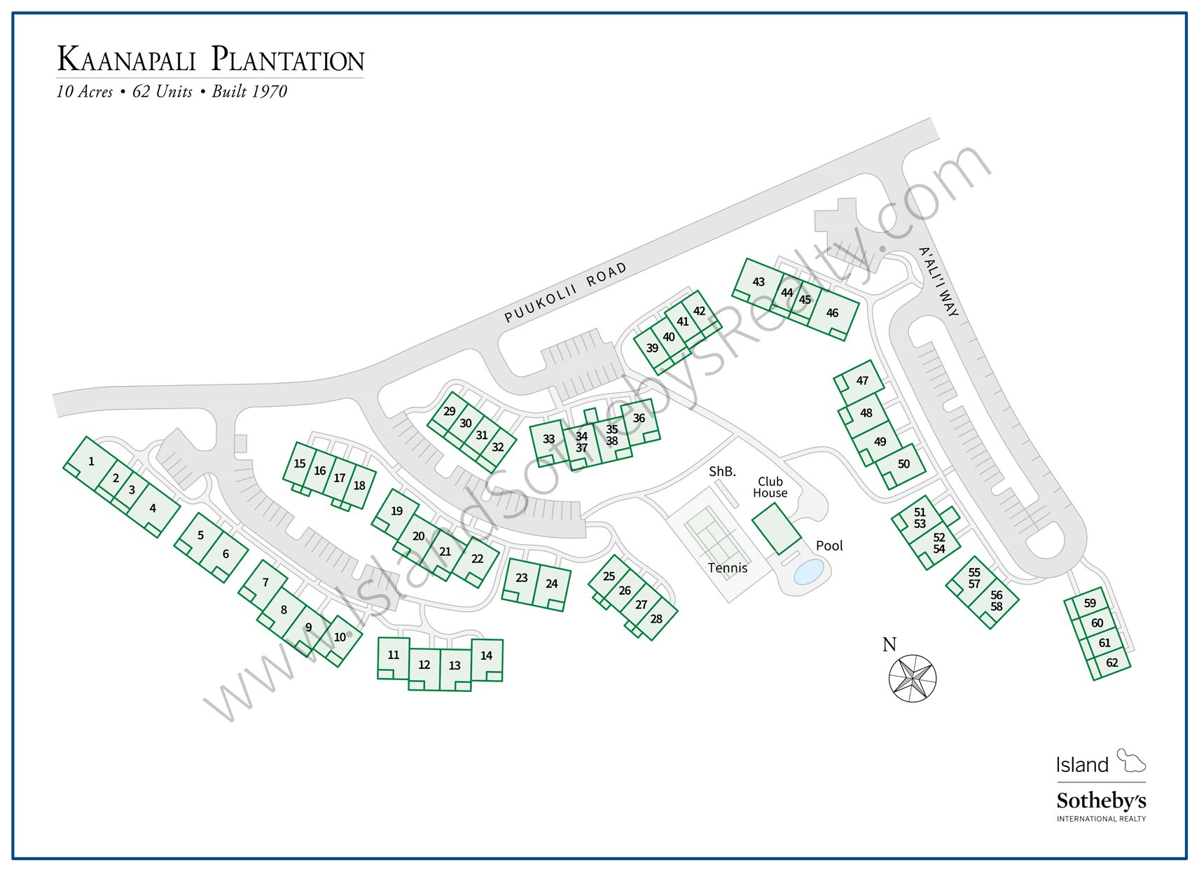 Located on Kaanapali’s Hillside fronting the Kaanapali Golf Course is Kaanapali Plantation, a 62-unit condominium development on 10 acres, built in 1970.